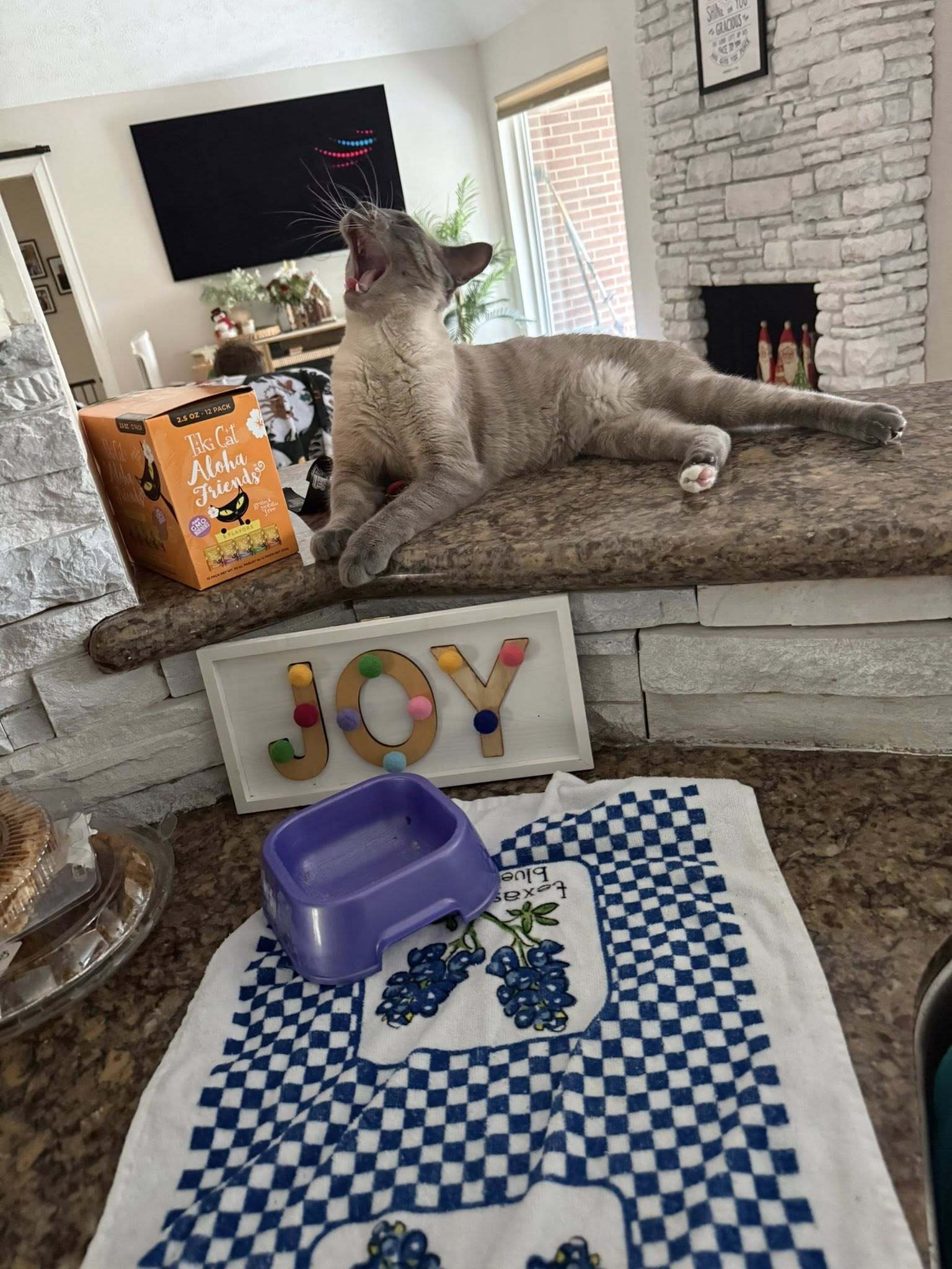 - Feeding and litter box cleaning.